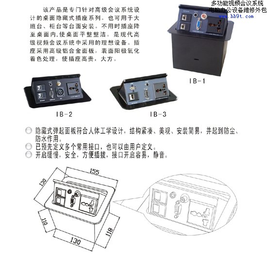 桌面插座滿足各種音視頻應用環(huán)境的要求。它用于固定的安裝在某一環(huán)境中,例如會議室的會議桌,指揮和控制中心操作臺。它能夠安裝在隔斷墻壁、地板、或者是桌面上,因此可以完全隱藏在整個環(huán)境中,使用時快捷專業(yè),不用的時候,就隱匿于視線之外, 易于管理。