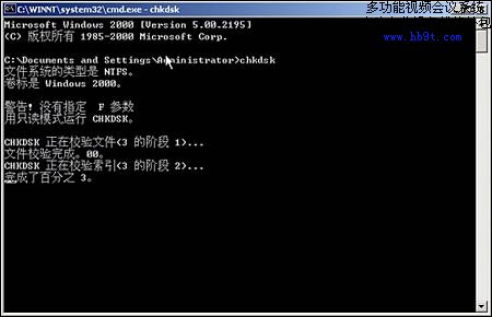 很簡單,在“開始→運行”中輸入“Cmd”,進入命令提示符。輸入“Chkdsk”,回車后就會開始查找磁盤錯誤,找到后可以使用“Chkdsk /F”進行修復(fù)(見圖3 24rntfs03)。