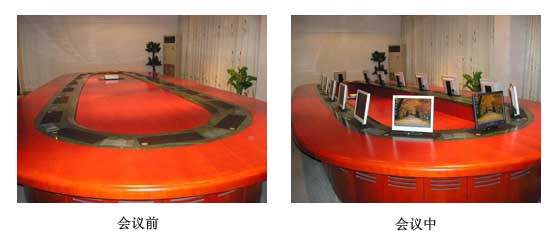 主要用于在大型會議室內(nèi),當舉行會議,需要使用顯示屏時,隱藏在會議桌內(nèi)部的升降機把顯示屏從會議下面升到桌子表面;當不使用顯示屏時,升降機自動下降,顯示屏隱藏在會議桌內(nèi)部,防盜、防塵;保持桌子表面的平整和美觀。